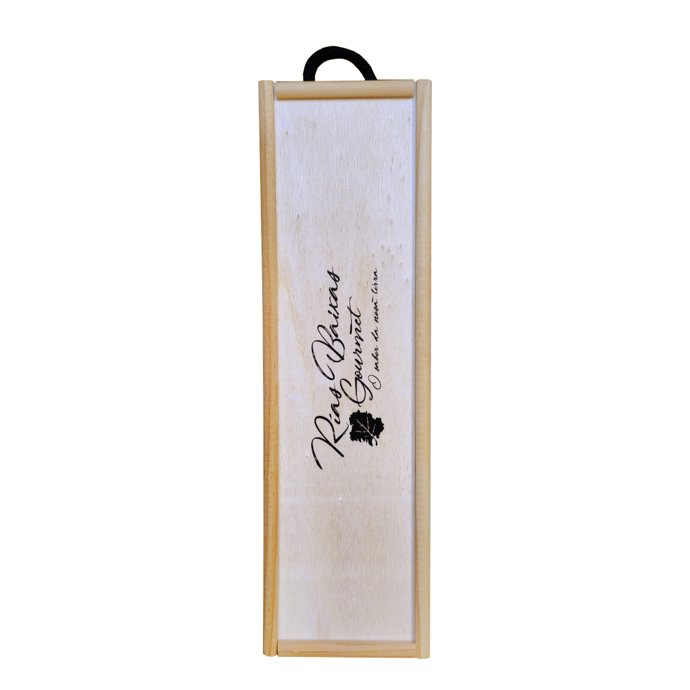 Caja madera 1 botella en acabado natural con tapa corredera.