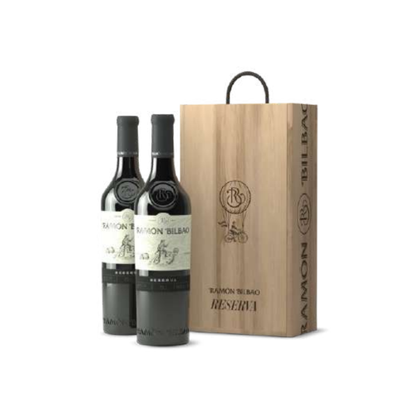 Caja madera Ramón Bilbao Reserva · 2 botellas