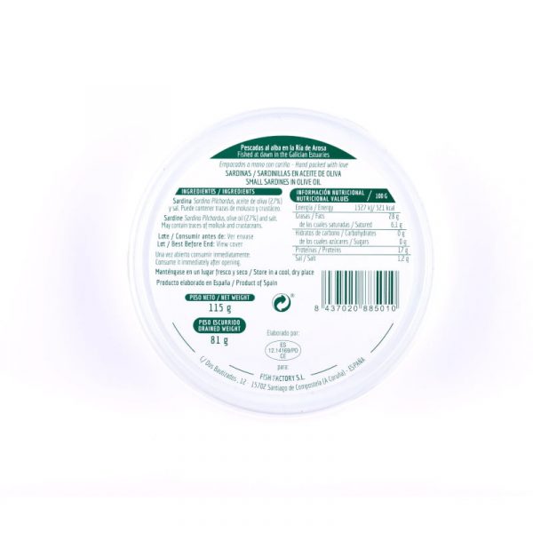 Ingredientes: Sardinas, aceite de oliva y sal.