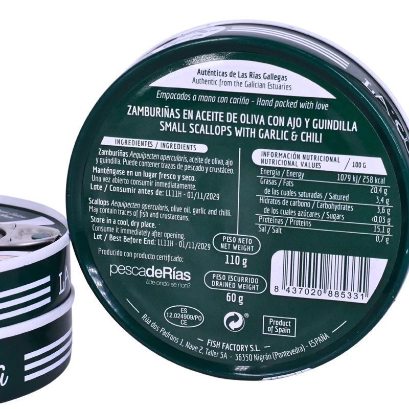 Zamburiñas al ajillo La Curiosa · Conserva Gallega